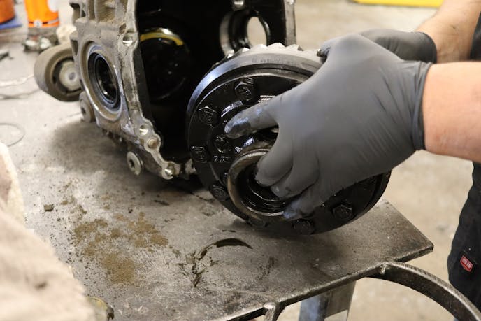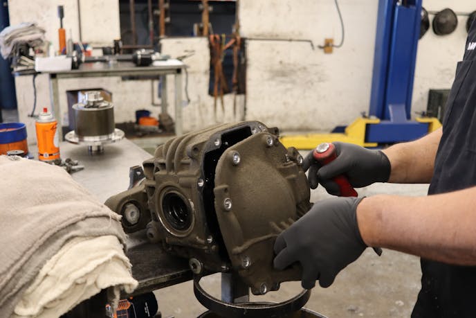 With the rearend out of the car, we got to disassembly. A few things of note for disassembly – when removing the pinion gear and seal, it’s important to use a gasket scraper to avoid gouging the aluminum housing. Other than that, things are pretty straightforward.
