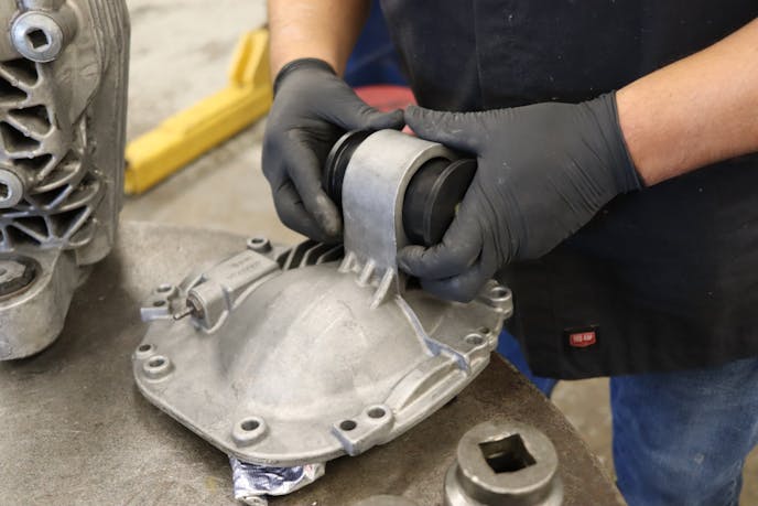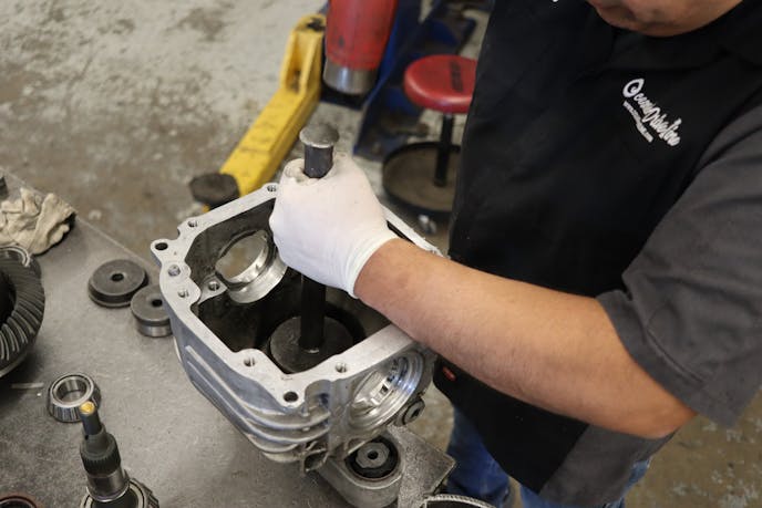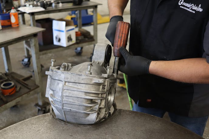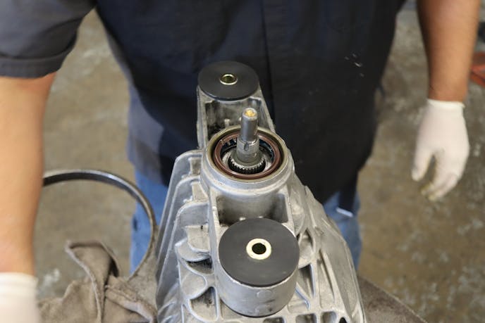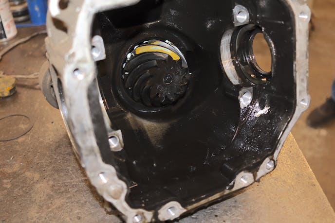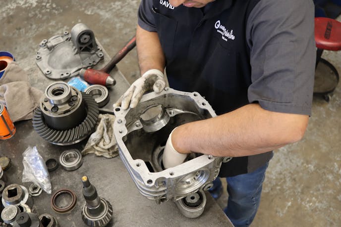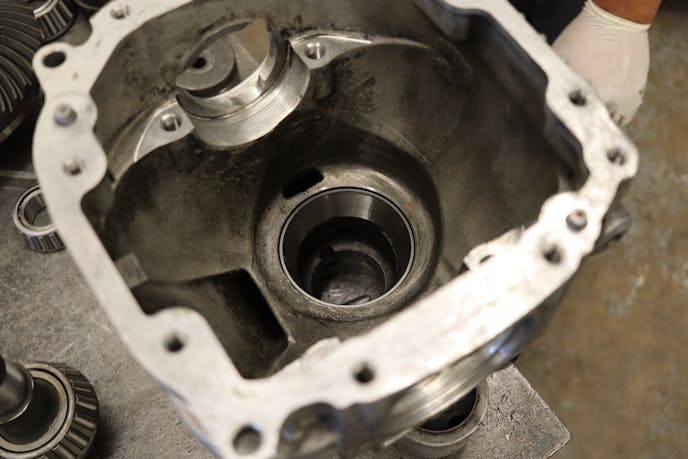 Installing the new bushings was, by comparison, much easier, and left us with a clean slate to install our new pinion gear.