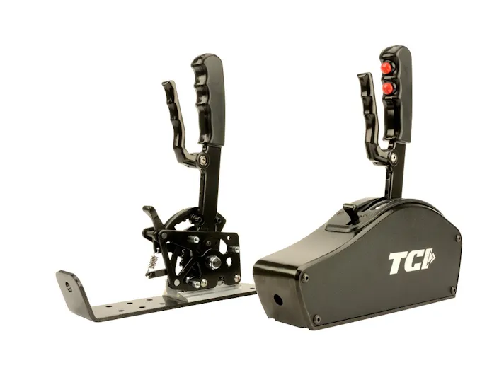 That means the shifter is adaptable to work with two-, three-, four- or six-speed transmissions in both forward and reverse shift patterns. There is also a two-button upgrade that can be incorporated into the handle for controlling nitrous, trans brake, or up and down shift points for electronically-controlled transmissions. The upgraded, two-button shifter is also directly compatible with TCI’s 6X Automatic or other transmissions controlled with TCI’s EZ TCU.