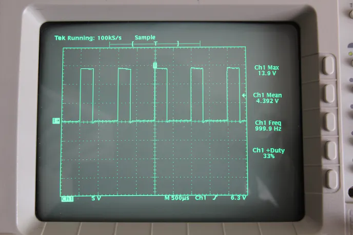 The real message to the pump can be seen on an oscilloscope where 13.5 volts is applied for a short pulse then dropped to zero and then a 13.5-volt pulse is applied again. This kind of voltage control is not harmful to the pump, because the armature is likely still spinning when the PWM signal is re-applied.
