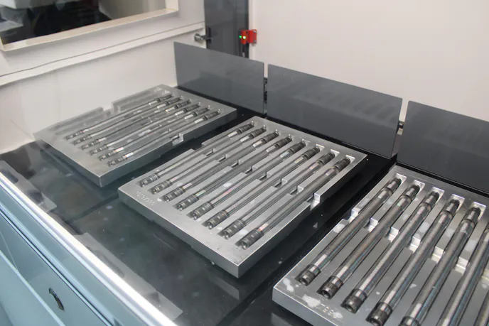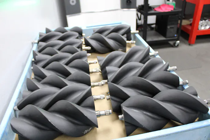 Raw blanks for the rotor shafts are heat-treated and milled by state of the art machinery.