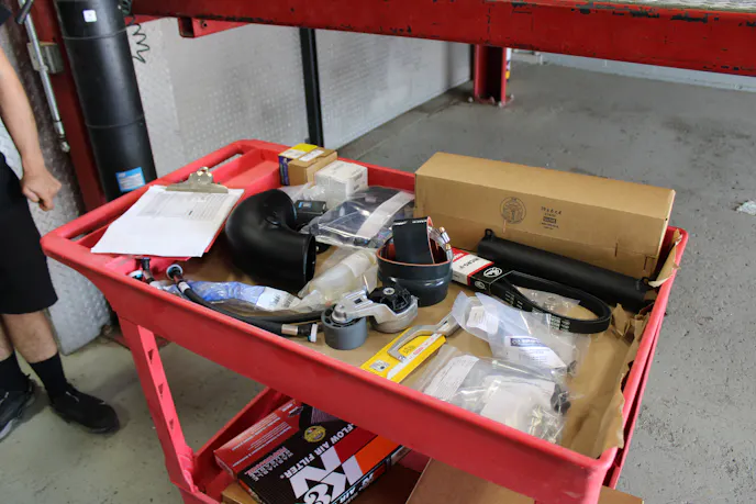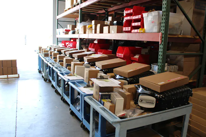 With the superchargers assembled, the Whipple crew pulls the rest of the kit parts from the warehouse to box everything up and ship out. The last photo shows all the kits that were boxed up and ready to ship that day.