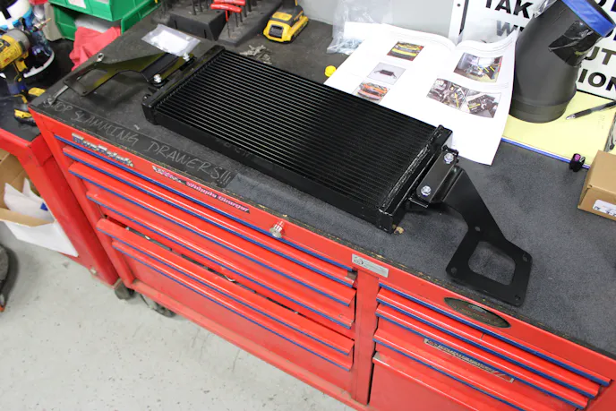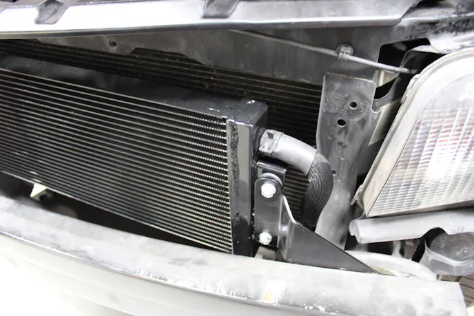 After removing the front wheels, front bumper, and fender liners, we were afforded unimpeded access to the heat exchanger’s mounting location in front of the radiator. Of course, all the necessary brackets are included in the kit.
