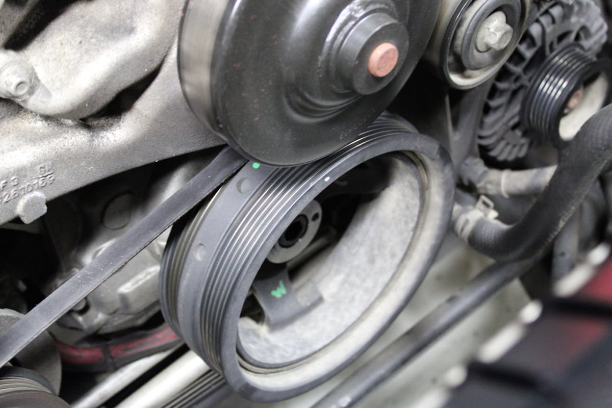 So, one of the last steps of the install involved us bolting on the new idler pulley plate and pulleys.