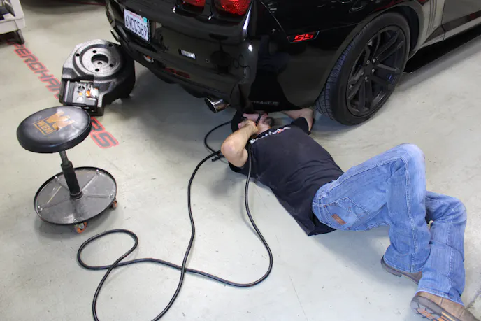 Dustin double-checking all of the coolant lines before we make some heavy dyno pulls.