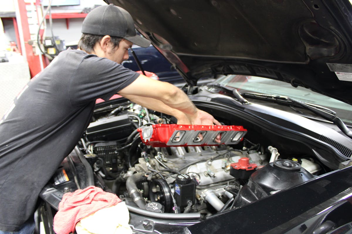 We started the installation of the actual 2.9L supercharger unit by removing the factory air box, throttle body, fuel rail, injectors, and intake manifold. All of it almost came off as one assembly.