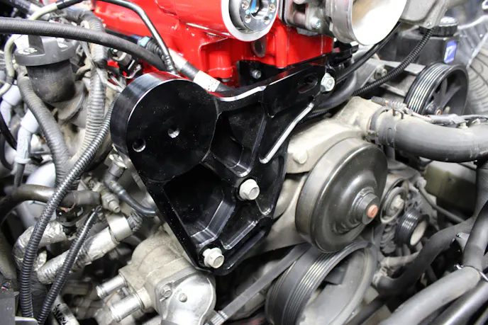 The idler pulley plate plays an integral role in the supercharger's operation, and the components, like the rest of the kit, are crafted with great care and precision.