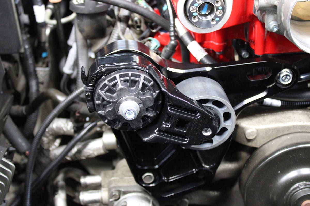 One of the key components of a supercharger kit that is often overlooked by those on the quest for major power is the belt. Which explains why the new idler pulley plate is so important. To prevent the blower from spitting out belts or shredding them, there has to be a proper amount of tension on it at all times, but still enough flex that they won’t snap under heavy load.