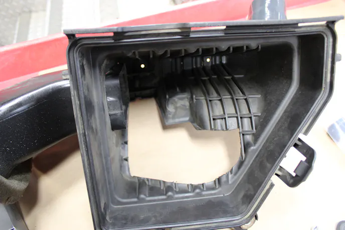 The factory airbox mod gives the whole install a factory-fresh appearance while circumventing difficult tests which enables Whipple to make this kit 50-state legal.