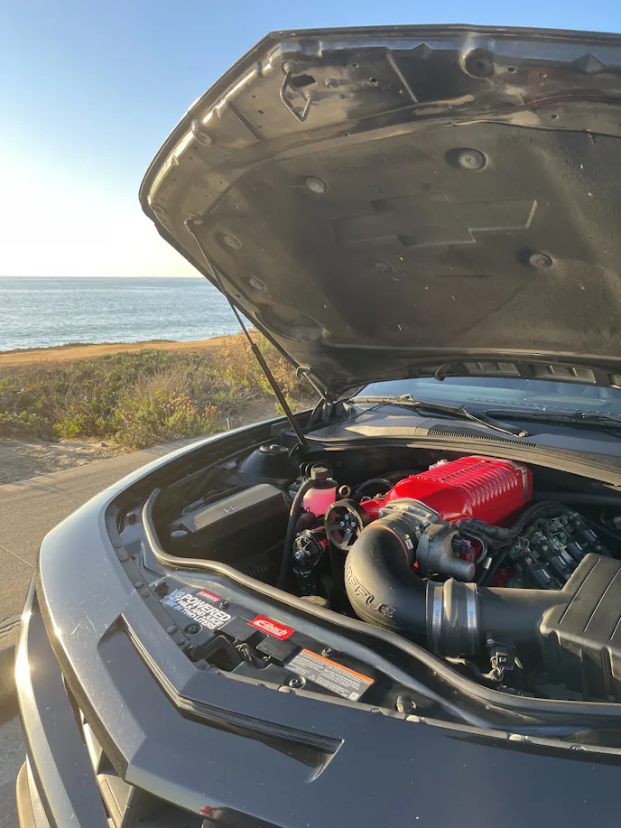 It’s only when you crack the throttle open and really put the spurs to it that the Camaro becomes a different animal altogether. Thanks to the bright red Whipple Supercharger, passing in any gear on the highway makes it nearly impossible to not smile ear to ear.