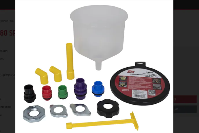 “We’ve been doing this for 25 years. I feel like what most people were doing (and we did it, too) was you first fire the vehicle up, and the coolant would drop in level, so you kept topping it off, and as soon as that thermostat would open, it comes gushing out and makes a mess,” said Aitken. “Then you capped it, which was bad. It’s been 20 years I’ve been using that Lisle funnel and the main thing is it serves two purposes.