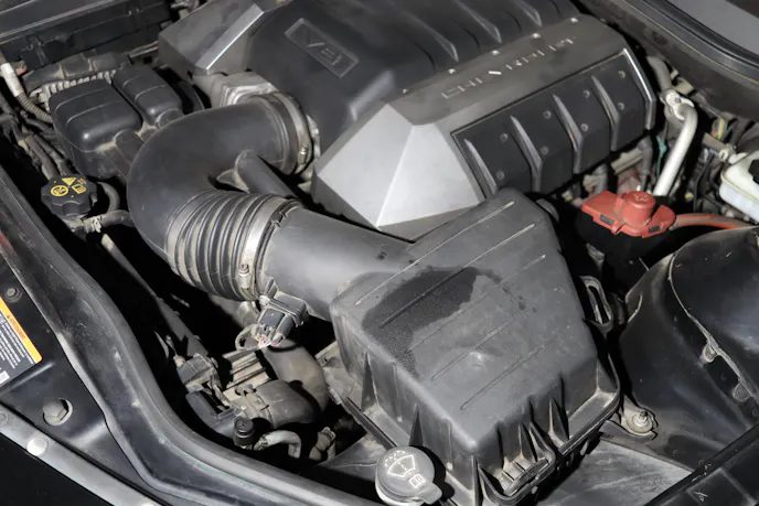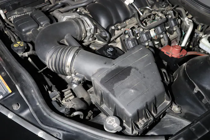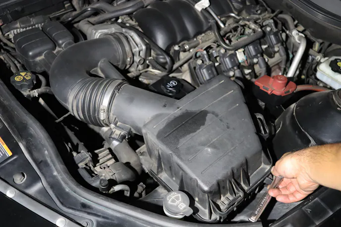 To begin the installation, we first removed the plastic engine cover by removing the oil fill cap and pulling upward on the cover. With the engine exposed, we removed the factory air intake and filter housing. We avoided disconnecting all of the sensors by simply rotating the intake out of the way while we worked which saved time on reassembly.
