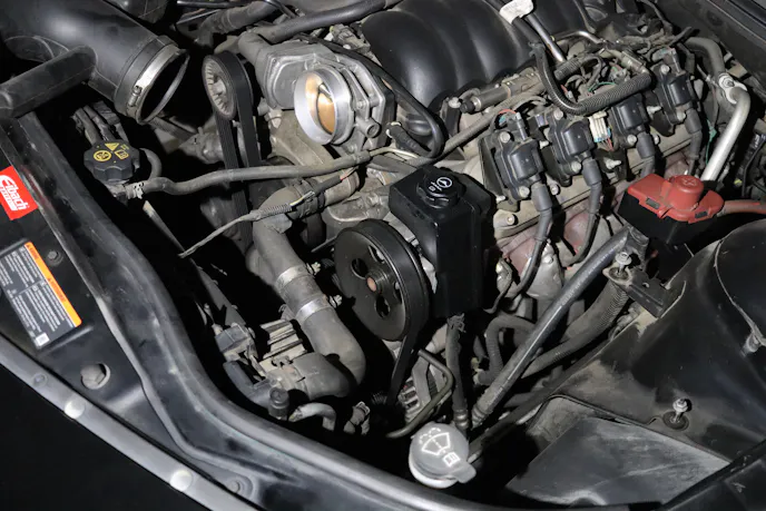 Once the HP2 Pump was re-attached, all we had to do to finish the installation fill the reservoir with high-performance power steering fluid, lift the front of the car. With the wheels in the air, we started the Daily Camaro and turned our steering wheel from lock to lock over and over again until the air in the power steering system was bled, and we could no longer hear the pump whining.