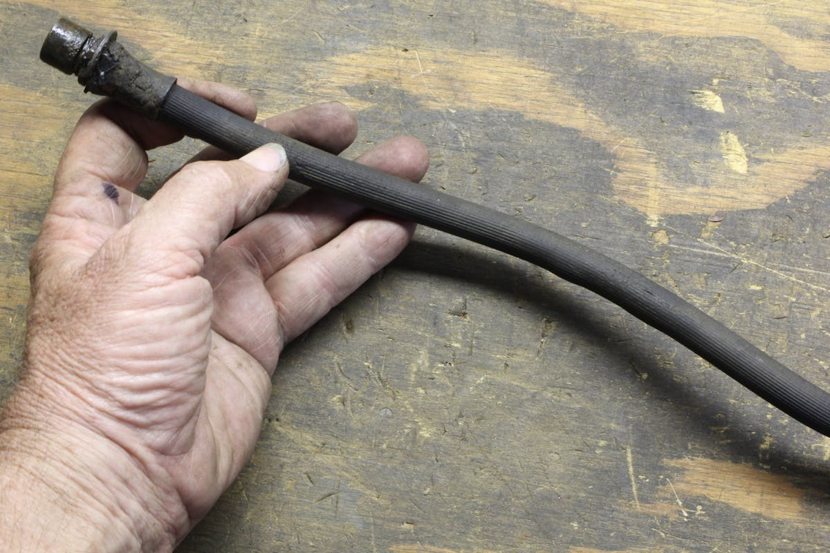 We noticed there was residual pressure in the rear hydraulic circuit that kept the wheel cylinder pistons applied. The car was equipped with a rear brake adjustable pressure regulator so we assumed that was the problem. We purchased one from Summit Racing and installed the new valve but that did not solve the problem. Even worse, now very little pressure was being applied to the rear drums. We next looked for a kink in the line was restricting the flow. We could not find one which left the flexible brake hose as the only other possibility. A visual inspection of the hose did not indicate it was bad, but after we removed the hose an air nozzle with 100 psi pressure test could not force air through the hose so clearly it had collapsed internally.
