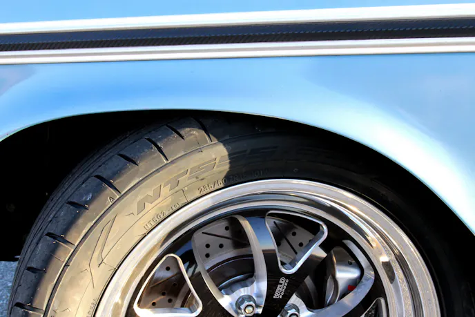 For the musclecar look and feel, Nitto provides larger tread blocks for the 275 and wider series tires, perfect for traction on cars with staggered fitments and higher horsepower. While we found that we were constantly chirping our tires under heavy acceleration with lesser tires, the wide 295-wide rear tire is harder to break loose, giving us more control when we lay the hammer down.