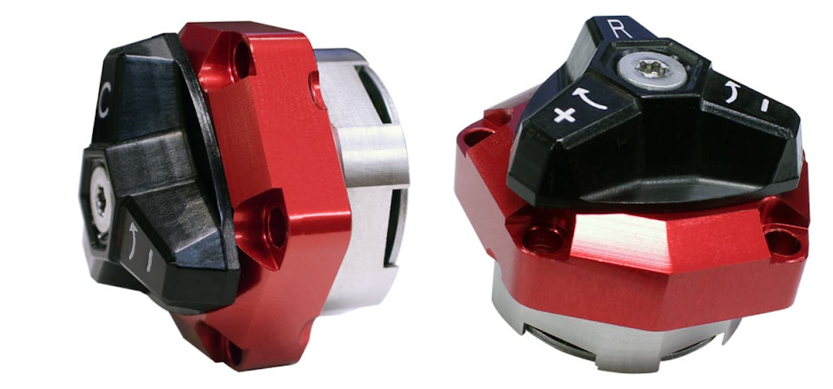 The valve pack conversion is accomplished by removing five small Allen bolts and no fluid or pressure is lost during the conversion, making it both simple and easy to change the range of force for the shock. Each pack is designed with a given force range for both compression and rebound with a 24-click adjustment range within each pack.