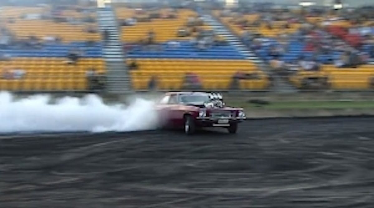 The burnout is a different thing to different people. It is the tire warming ritual that is the staple of any drag race. It’s also one of the great ‘look at me’ stunts that people attempt with their cars and trucks. However this visual evidence suggests that the Aussie’s interpretation of a burnout contest is far different from the static tire cook-offs normally seen at local car shows.