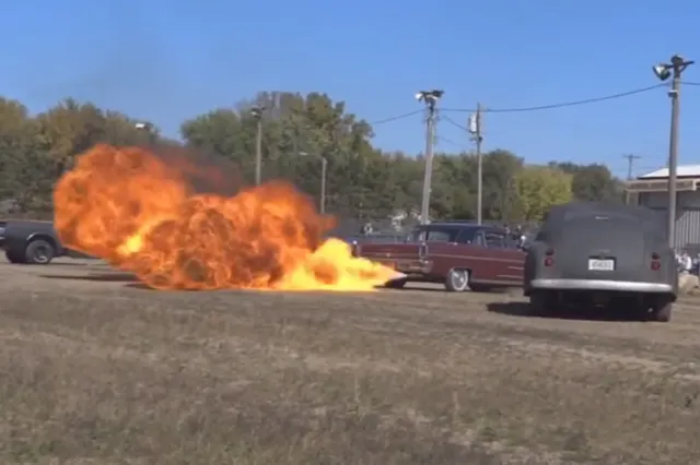 Check out the video above for some of the action. Warning, there is explicit language in this video. Tinman II Kustoms put together this compilation of flame throwing action and also added in the chats he had with car owners about their cars and mods done to them. Featuring some pretty unique ways to pipe the flames out, each car was set up a bit differently. One car, a 1963 Oldsmobile Cutless runs an all aluminum 215 cubic-inch V8. The tricked part about that hot rod is the hydraulic exhaust tips to kick his flames further away from his patina’d paint job.